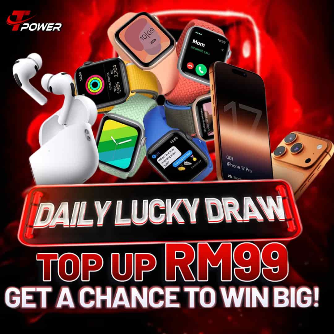 TPOWER PROMOTIONDeposit RM99 daily to participate in the lucky draw and stand a chance to win various APPLE prizes.